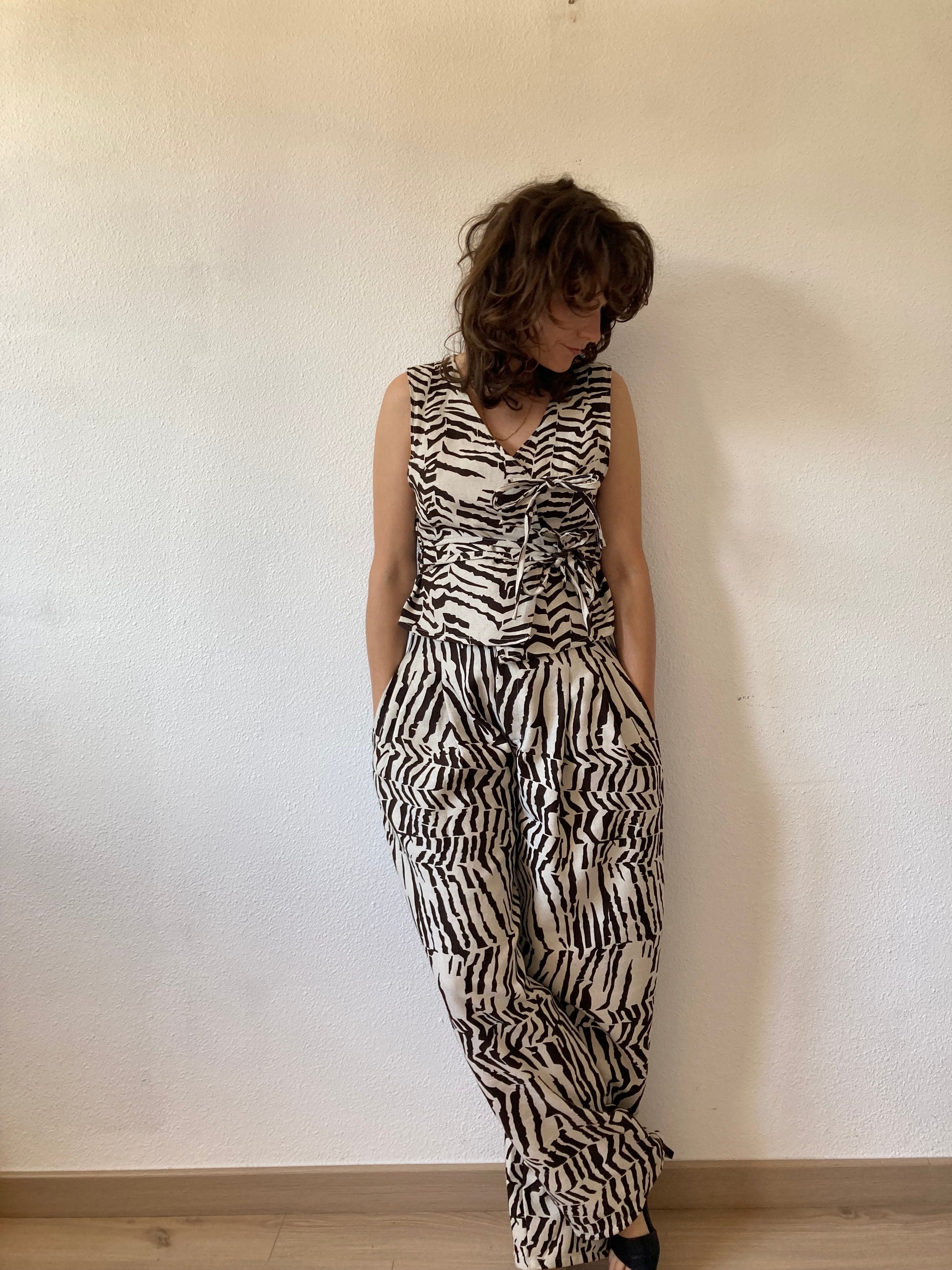 Son tombé fluide, renforcé par un tissu en lin et coton, apporte une allure à la fois affirmée et légère — parfaite pour les beaux jours.