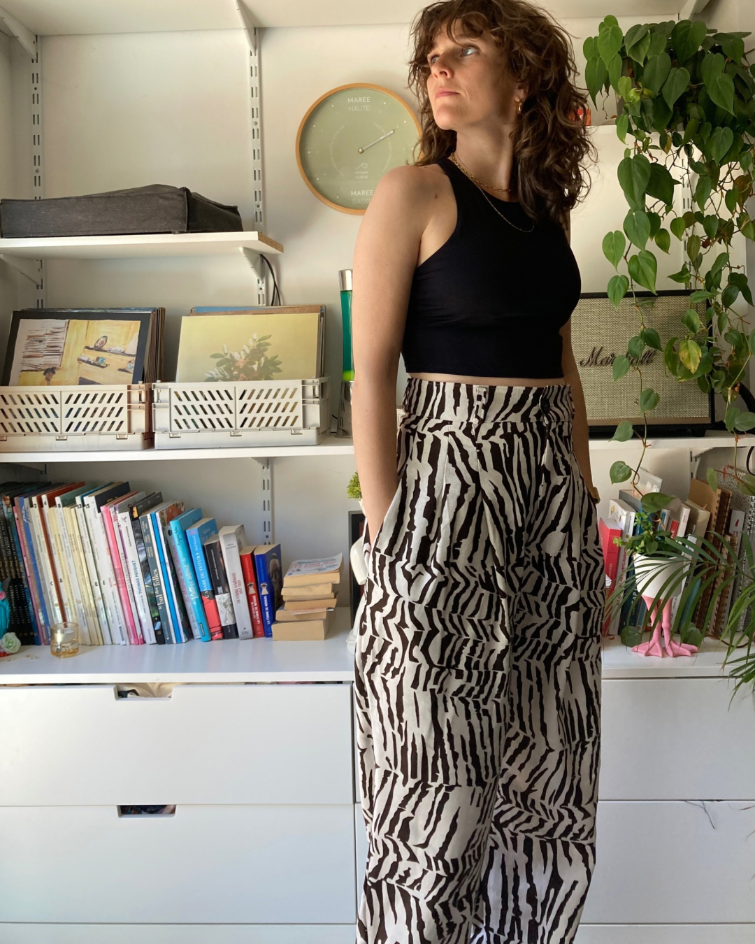 Le pantalon Basile revisite un classique du vestiaire avec une coupe barrel, oversize, et une taille haute qui allonge la silhouette.